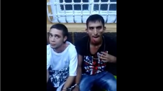 Pero la fechoría una vez cometida no les duraría mucho, a menos de una cuadra del sitio del asalto son capturados por transeúntes del lugar. El grupo de personas visiblemente molestos proceden a retener a los delincuentes en el acto, hasta que las autoridades competentes llegan al lugar.
