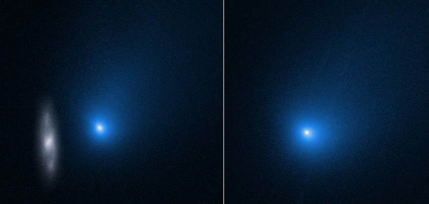 These two images, taken by Hubble, capture comet 2I/Borisov streaking though our solar system and on its way back to interstellar space. This mysterious visitor from the depths of space is the first identified comet to arrive here from another star: https://t.co/PwF4ykArGa pic.twitter.com/GMi6mvJa1T