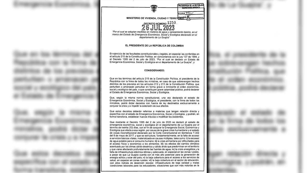 Este jueves (27 de julio) se conoció el primer decreto expedido tras la declaratoria de emergencia económica en La Guajira.