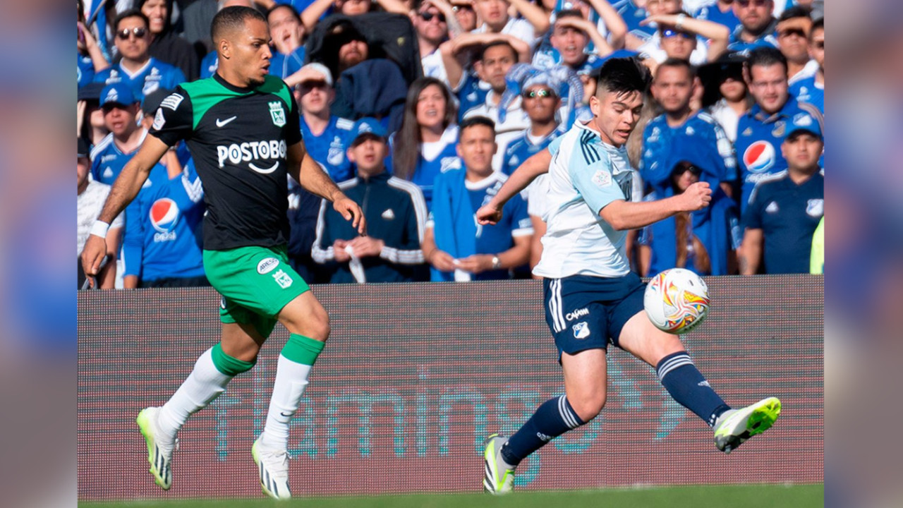 Atlético Nacional pierde, al cierre de los primeros 45 minutos, contra Millonarios en el estadio El Campín de Bogotá.