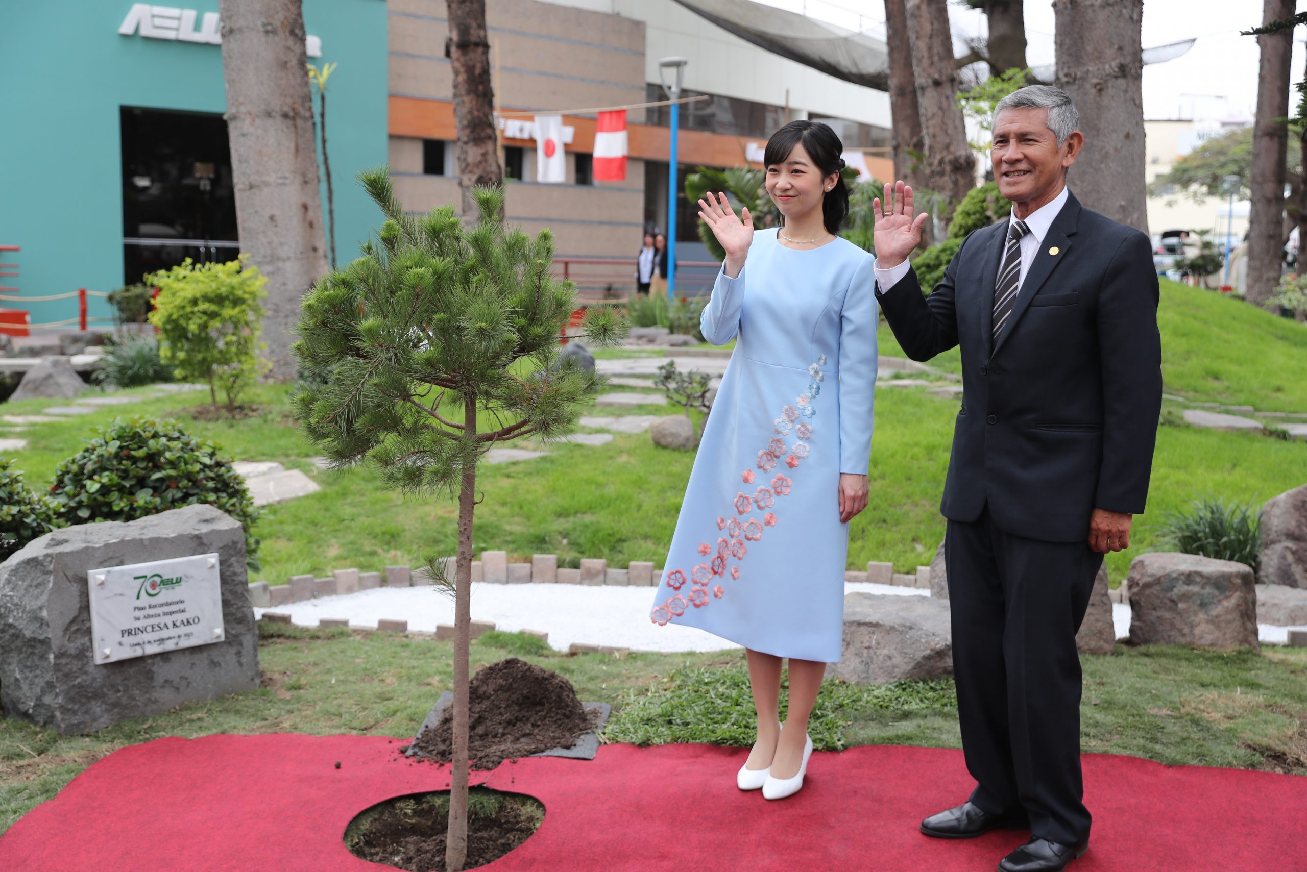 Antes de ingresar al estadio, la princesa sembró en sus jardines un árbol para conmemorar su visita, muy cerca de donde su hermana Mako, que abandonó la realeza para casarse con un plebeyo en 2021, sembró un pino en su visita del 2018 a Lima.