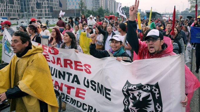 “Inicia la marcha de antorchas en Bogotá. ¡Arriba el paro del magisterio! Adelante profesores“, indicó en Twitter la Federación Colombiana de Trabajadores de la Educación (Fecode), que agrupa a 300.000 docentes de todo el país que comenzaron un cese indefinido de actividades el pasado 11 de mayo.