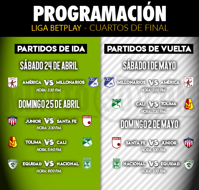 Minuto30.com- La Dimayor definió la programación de los partidos de ida y vuelta de los cuartos de final de la Liga BetPlay I-2021.