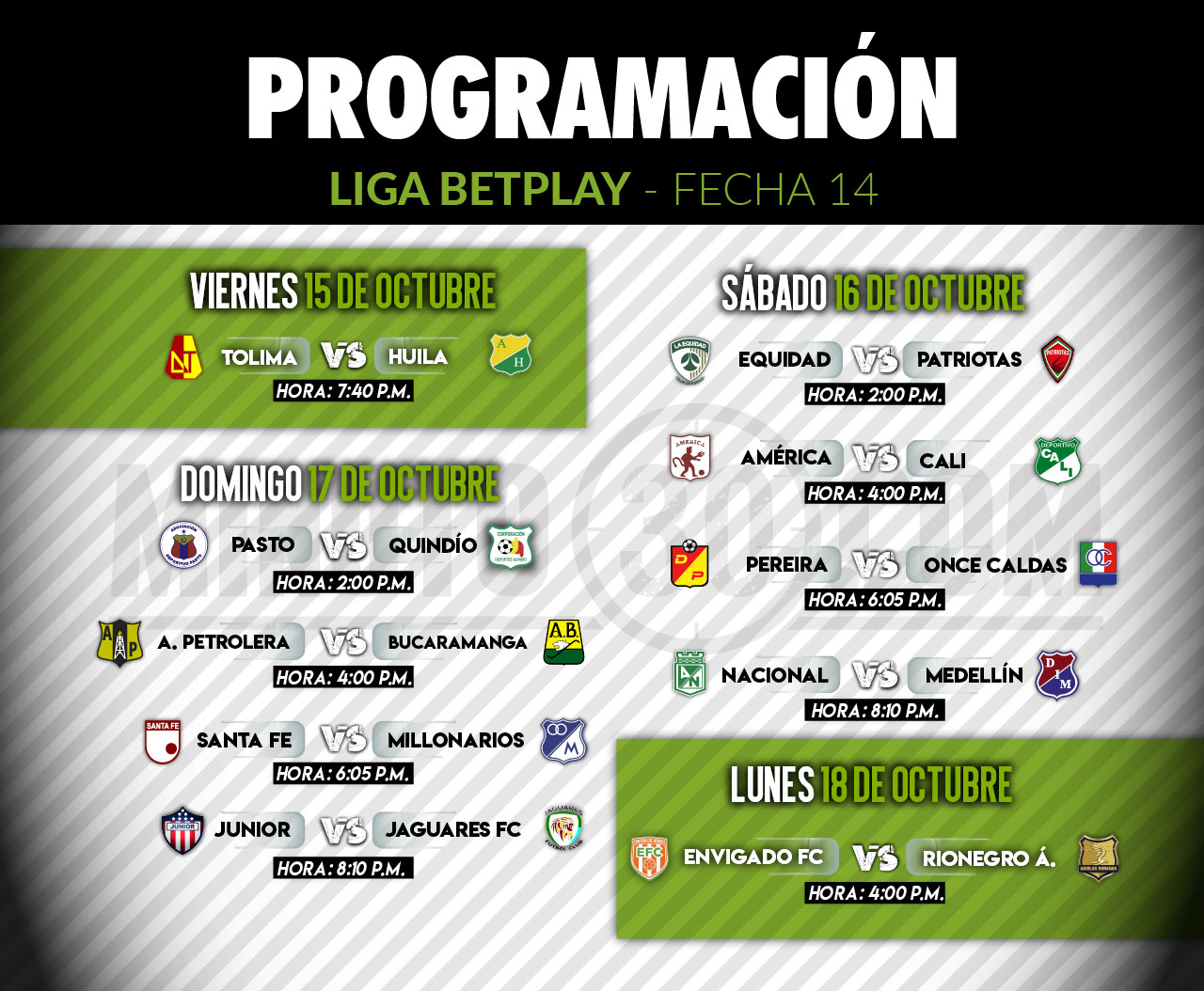 Independiente Santa Fe y Millonarios se enfrentarán el domingo 17, a las 6:05 de la tarde; mientras que América y Deportivo Cali rivalizarán el sábado, a las 4:00 p.m.