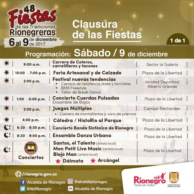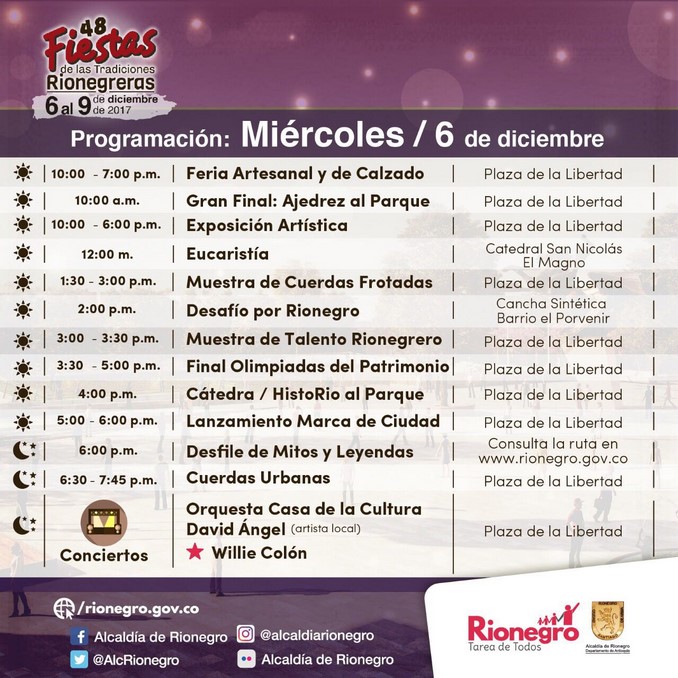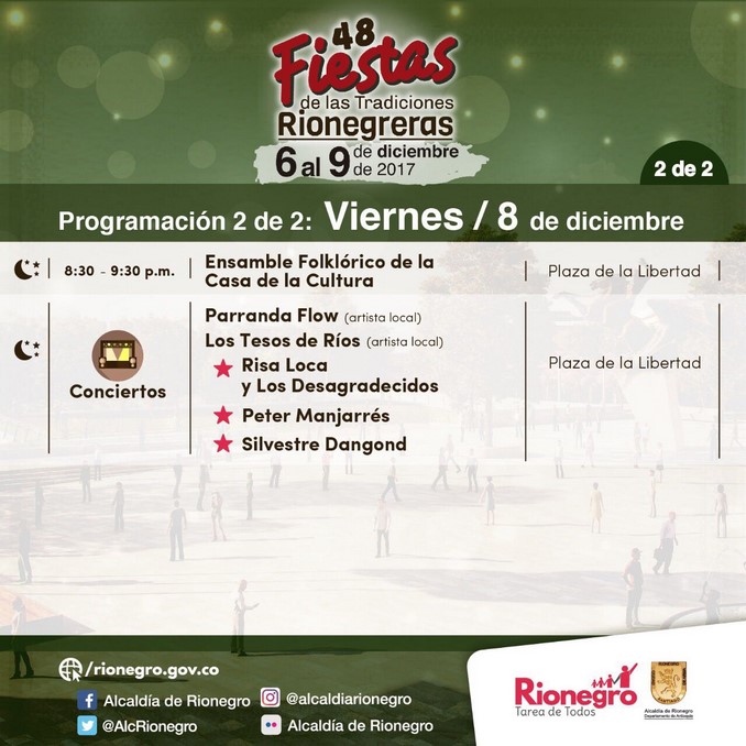 Desde este miércoles, artistas de la talla de Willie Colón, Dálmata , Arcángel, Silvestre Dangond, Peter Manjarrés, Ñejo y Jorge Celedón pondrán a bailar a propios y visitantes en Rionegro.