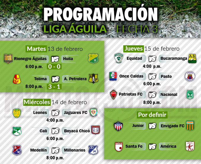 Minuto30.com- Con dos partidos comenzó el martes la tercera fecha de la Liga Águila I-2018, que también tendrá programación miércoles y jueves.