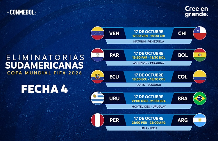 Desde las cuatro de la tarde inician los partidos de la cuarta fecha de las eliminatorias rumbo al Mundial de 2026 en Norteamérica.