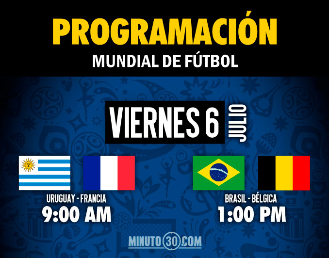 A las 9:00 a.m. Uruguay, que marcha con puntaje perfecto, y viene de dejar en el camino a Portugal; se medirá con Francia, que aumentó su favoritismo tras el fútbol que exhibió en octavos ante la Selección de Argentina, a la cual dejó por fuera de competencia.