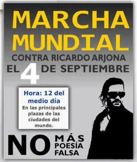 En las últimas horas comenzó a circular en la Web una convocatoria para marchar en contra de la “poesía falsa” de Ricardo Arjona. Sí, así de directo como lo leen.