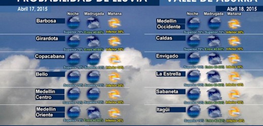 Pronóstico del Tiempo 24/7 para Medellín y el Area Metropolitana, para el 18 de abril