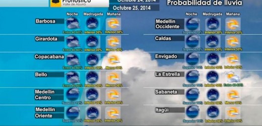 Pronóstico del Tiempo 24/7 para Medellín y el Area Metropolitana, para el 25 de octubre