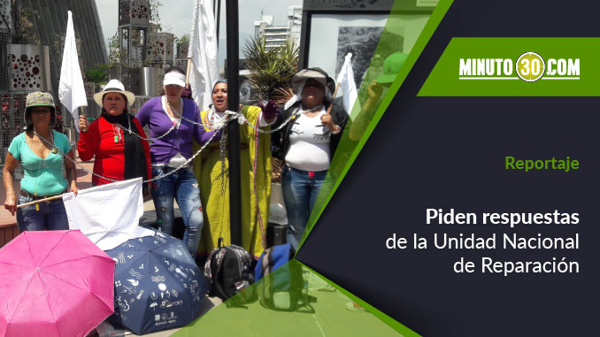Al sol y al gua, encadenados, cubriéndose de las altas temperaturas con pancartas y banderas blancas, elevando consignas de rechazo, estas personas piden que la Unidad Nacional de Víctimas, les entregue alguna respuesta a sus inquietudes, las cuales están relacionadas con el acceso a la vivienda, empleo y subsidios.