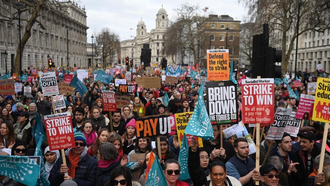 Londres, 1 feb (EFE).- En una de las jornadas de huelga más masivas en una década en el Reino Unido, miles de profesores, funcionarios, empleados ferroviarios y otros trabajadores salieron a la calle en numerosas ciudades del país para exigir mejoras salariales ante la crisis por el coste de la vida.