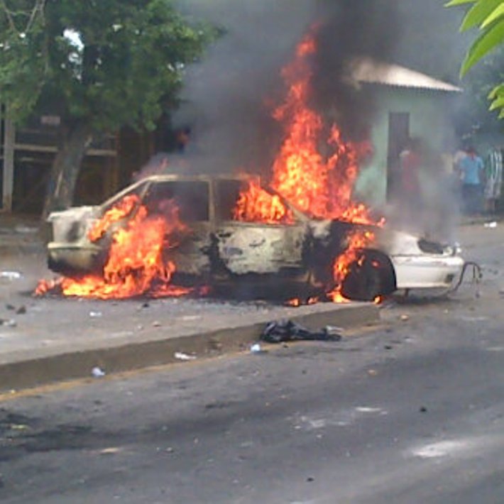Dos carrros particulares y dos motocicletas han sido quemadas por los manifestantes.