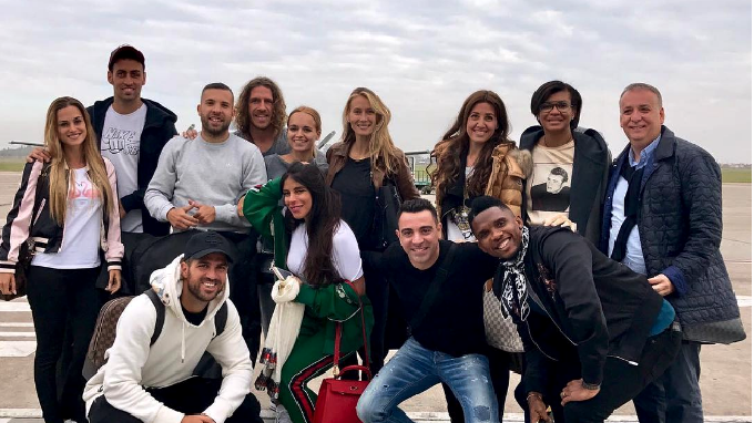 Los españoles Carles Puyol, Sergio Busquets, Xavi Hernández, Jordi Alba, Cesc Fábregas y el camerunés Samuel Eto’o, acompañados por sus parejas, son algunos de los compañeros o excompañeros de Lionel Messi en el Barcelona que llegaron este jueves a Rosario para asistir a su boda con Antonela Roccuzzo.