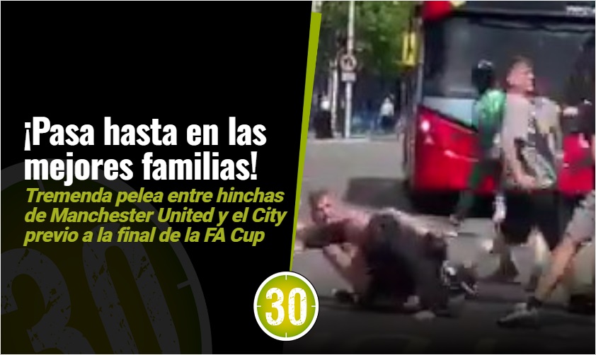 Resumen: Violenta pelea entre hinchas del Manchester United y el City antes de la final de la FA Cup. Un grupo de aficionados del Manchester United y el City se enfrentaron en una violenta pelea antes de la final de la FA Cup que se disputó en el estadio Wembley de Londres. El video de la pelea se hizo viral en las redes sociales y muestra a los hinchas golpeándose entre sí en plena calle. La pelea provocó interrupciones en el tráfico y no hubo una intervención rápida por parte de las autoridades. A pesar de la violencia, el Manchester United se impuso al City por 2-1 en la final.