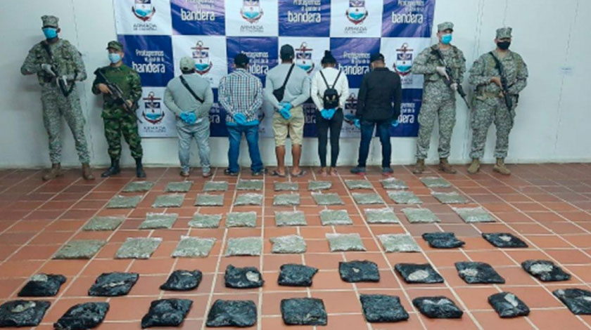 Durante la operación fueron capturadas cinco personas por la presunta comisión del delito de tráfico, fabricación o porte de estupefacientes contemplado en el artículo 376 del Código Penal Colombiano. Los individuos capturados y el material incautado fueron puestos a disposición de la autoridad competente.