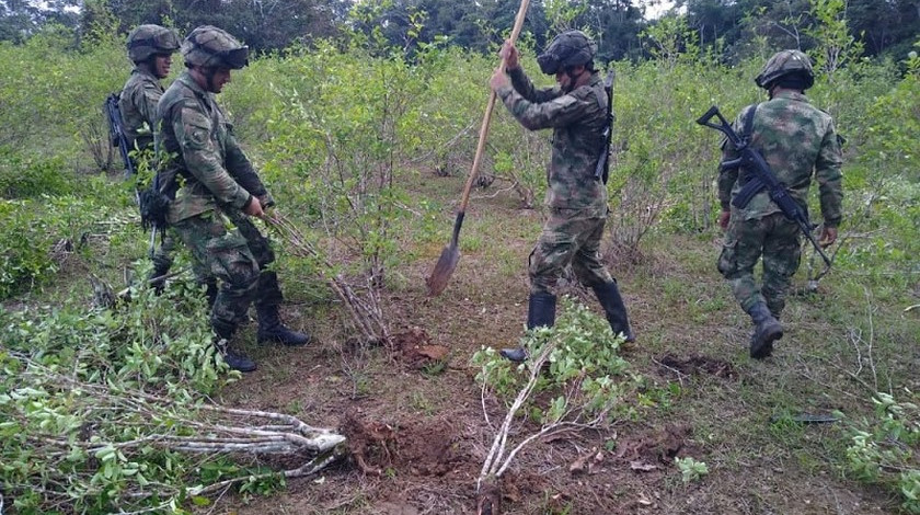 El Ejército Nacional logró la ubicación y destrucción en área rural del departamento del Guaviare de un laboratorio para el procesamiento de pasta de base de coca y 2 semilleros con 500.000 matas de coca, lo que afecta el motor económico del GAO-r Estructura Primera.