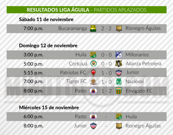 La jornada que puso al día gran parte de los partidos aplazados se cumplió durante este fin de semana, dejando como nota destacada la caída de Atlético Nacional ante el descendido Tigres de Bogotá.