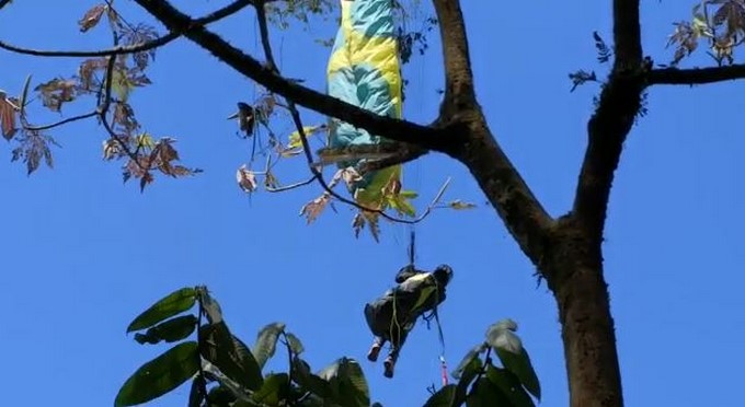 Según las autoridades, el sujeto quedó atrapado durante cuatro horas en un árbol de este municipio del oriente antioqueño hasta que logró ser rescatado ya que, al parecer, tuvo una falla mientras estaba en el aire, lo que habría provocado su caída.
