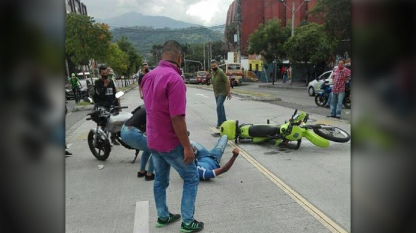 El accidente se presentó entre dos motociclistas, uno de los vehículos pertenecen a la Policía Metropolitana del Valle de Aburrá.