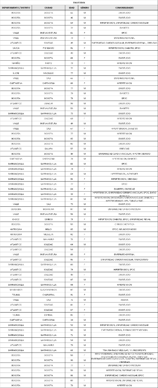 – Hombre de 85 años de edad del municipio de Bello, quien presentaba neumoconiosis y epoc.