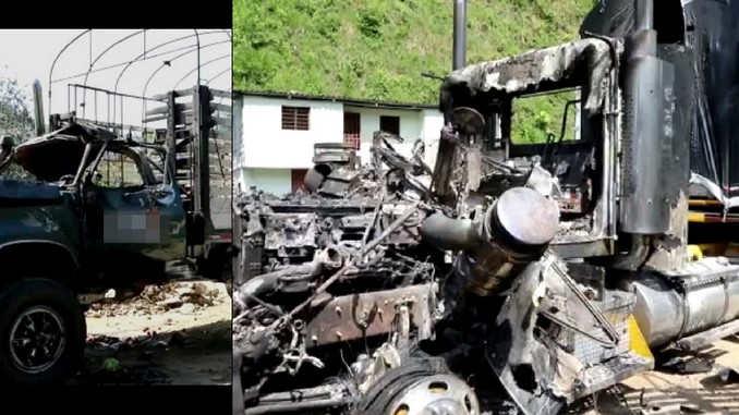 En horas de la noche del pasado martes 29 de diciembre, Invías informó sobre el cierre de la vía Medellín – Costa Atlántica; un ataque terrorista se presentó a la altura del municipio de Puerto Valdivia, Antioquia que dejó cuatro vehículos de carga incinerados.