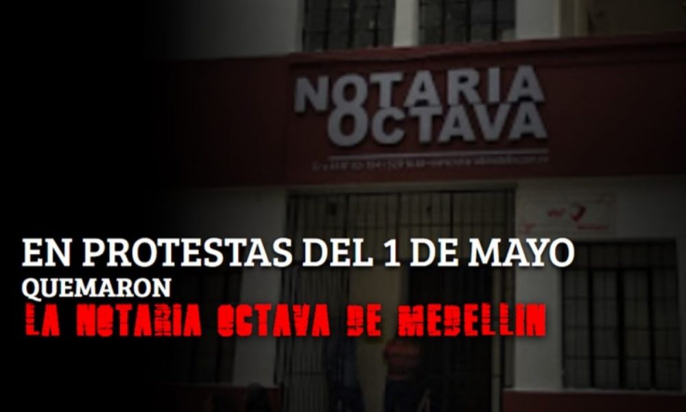 Minuto30.com .- La tarde de este 1 de mayo se habríangenerado graves disturbios en el centro de Medellín que habrían incluso llevado a ser quemada la Notaría Octava de Medellín.