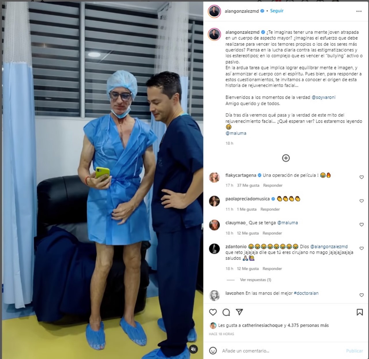 El video en el que salía Miguel Varoni acompañado del cirujano, quien publicó el video en su cuenta de Instagram con este escrito: “¿Te imaginas tener una mente joven atrapada en un cuerpo de aspecto mayor? ¿Imaginas el esfuerzo que debe realizarse para vencer los temores propios o los de los seres más queridos? Piensa en la lucha diaria contra las estigmatizaciones y los estereotipos; en lo complejo que es vencer el “bullying” activo o pasivo”.