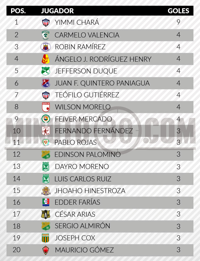 Entre tanto, los mejores ubicados de Atlético Nacional en la tabla de anotadores son Dayro Moreno y Luis Carlos Ruiz, quien se fueron en blanco en la décima fecha.