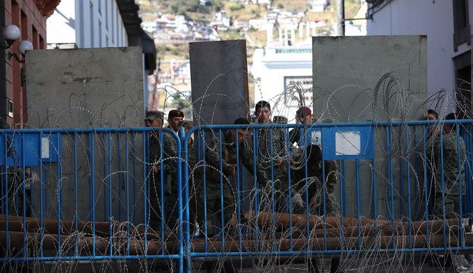Pese a que el jefe de Estado despacha desde Guayaquil, Arciniegas comentó que “por ser un lugar emblemático”, la marcha intentará llegar a Carondelet, adonde el paso está bloqueado con vallas, alambres, y un fuerte resguardo de las fuerzas del orden.