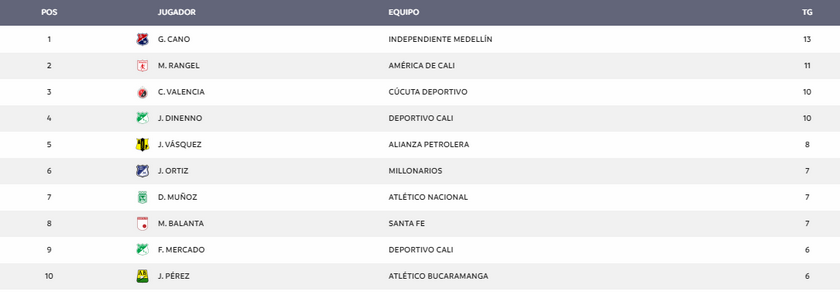 Por lo pronto, Germán Ezequiel Cano, se mantiene como líder del escalafón con 13 anotaciones, aunque para su infortunio no podrá sumar en lo que resta del torneo y deberá esperar que a sus persecutores no les rinda en el remate del torneo.