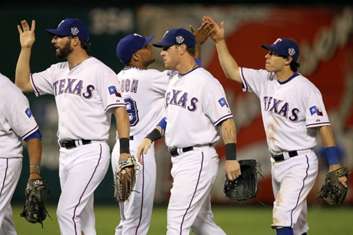 (Jonathan Sánchez) TEX: Elvis Andrus, ponche; Michael Young, hit al jardín izquierdo; Josh Hamilton, out en elevado a tercera; Vladimir Guerrero, out al jardín izquierdo.