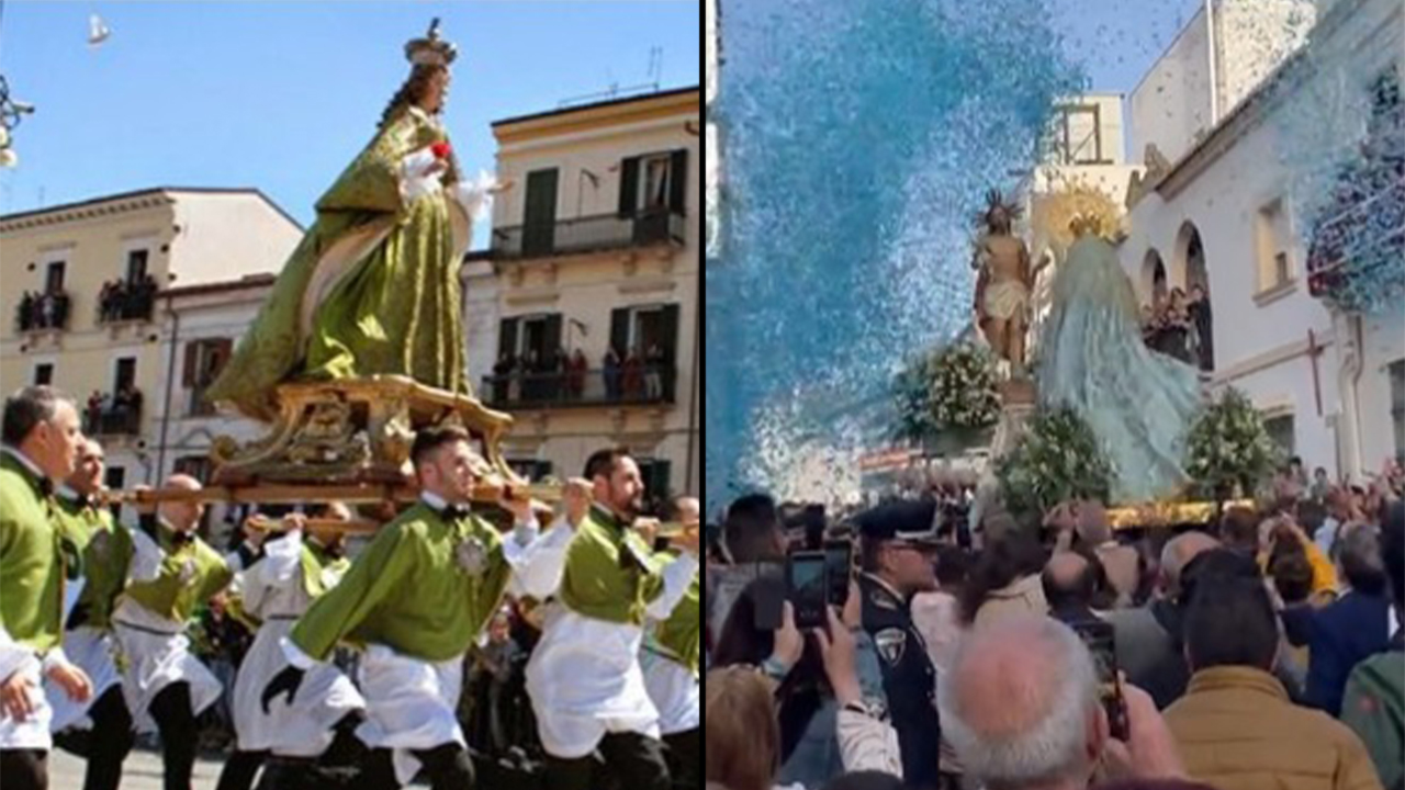 De hecho, en muchas ciudades los feligreses católicos realizan la famosa carrera del encuentro en la que todos corren detrás de la virgen para festejar.