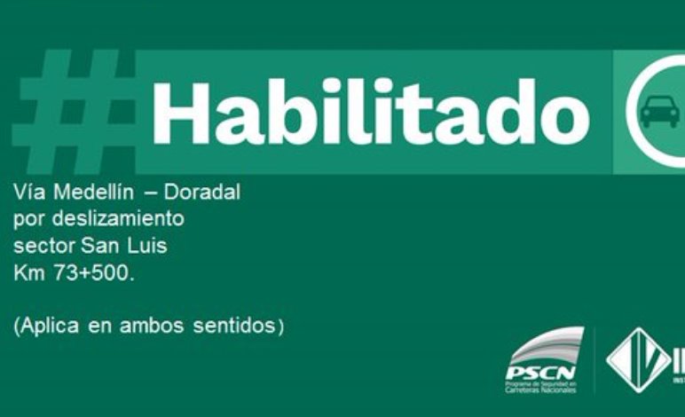 Minuto30.com .- A las 8 de la mañana de este domingo 22 de diciembre se habilitó el paso por la la vía Medellín-Doradal, luego de que en la madrugada se registrara el cierre total según informó INVIAS en sus redes sociales.