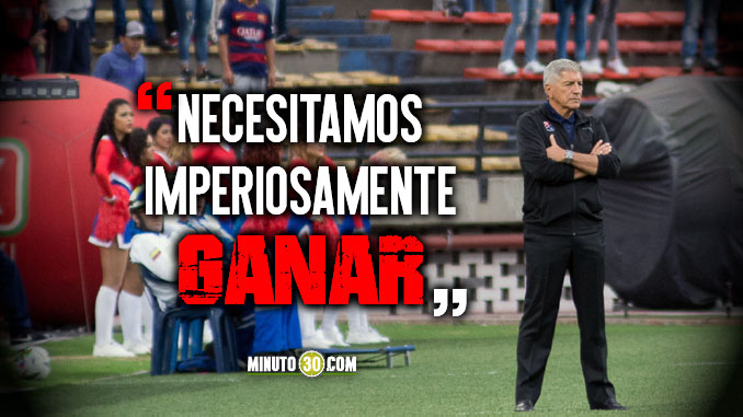 Aunque el empate 1-1 ante el ‘Azucarero’ estropeó las cuentas que él tenía de sumar 9 puntos consecutivos, lo que si no cambia es la obligación de ganar los partidos que tiene por delante, ante Rionegro Águilas Doradas, el jueves (4:00 p.m.) en el Estadio Alberto Grisales, y el domingo (8.00 p.m.) frente a Atlético Nacional, en el Atanasio Girardot.