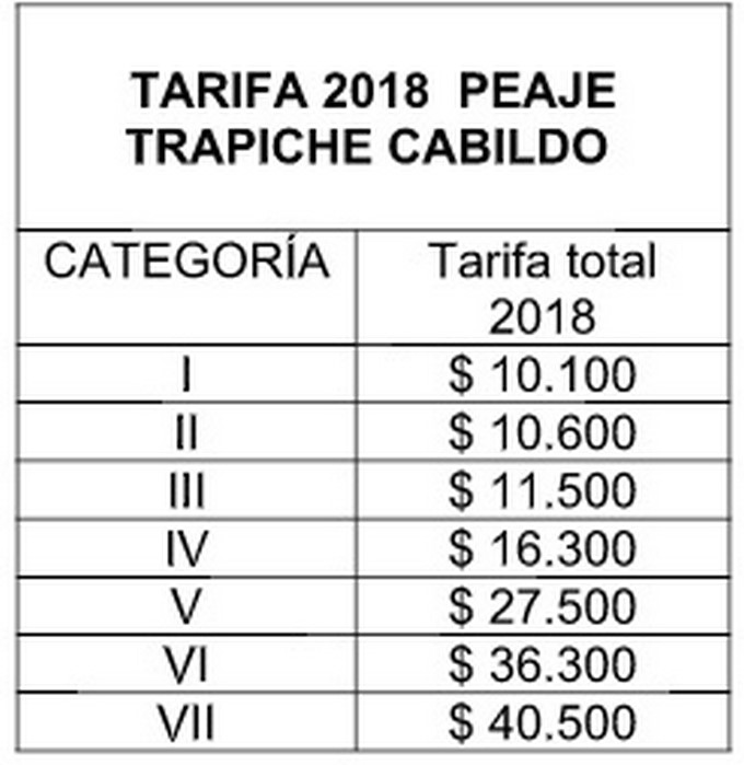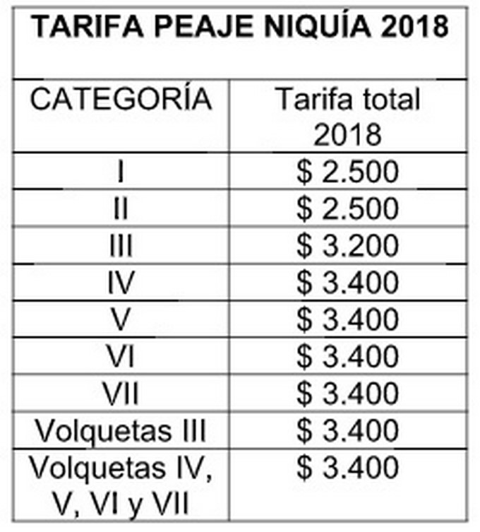 A partir del 1 de enero se reajustará la tarifa de los peajes en las estaciones de Niquía, Trapiche y Cabildo, ubicados en la vía Bello – Hatillo.