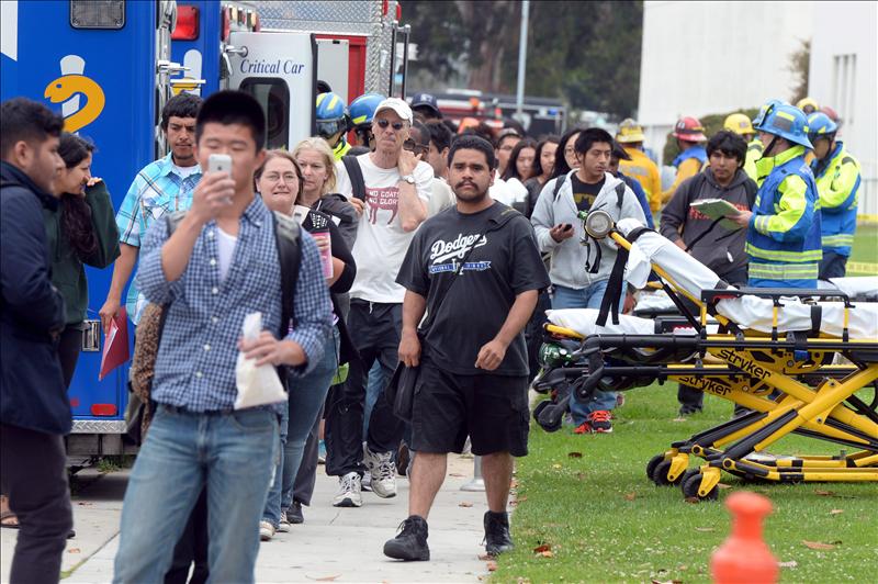 Varias personas son evacuadas del Santa Monica College despúes de un tiroteo en el que al menos siete personas resultaron heridas. EFE