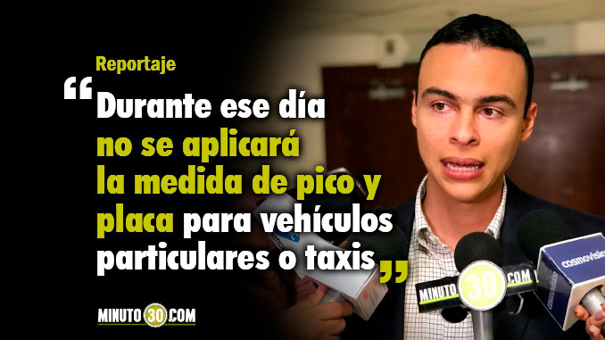 El secretario de Moviliad de Medellín, Humberto Iglesias Gómez resaltó que durante este día, no aplicará la medida de Pico y Placa para vehículos particulares o taxis, quien dijo además que vehículos particulares en los que se transporten tres personas o más podrán circular, al igual que las motos en las que viajen dos personas. Quien incumpla esta medida tendrá una sanción de 15 salarios mínimos diarios legales vigentes, que equivalen a $390.615, y la inmovilización del vehículo.