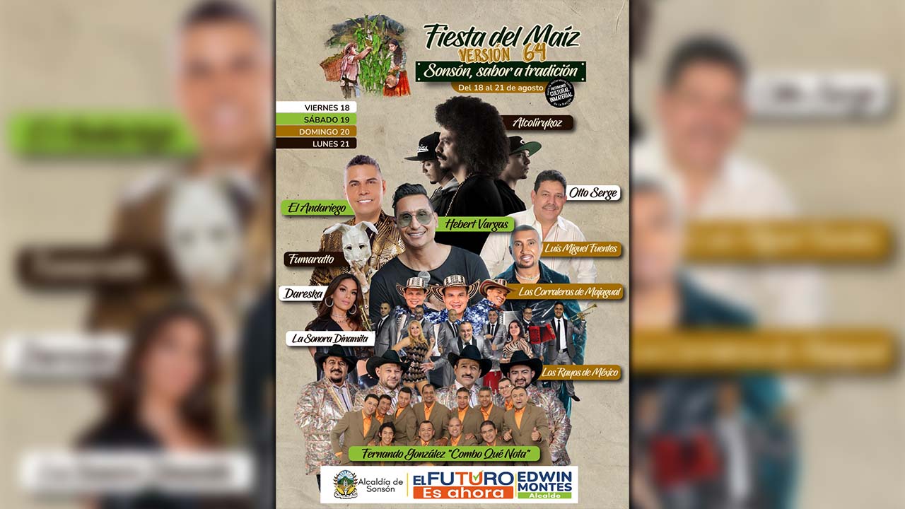 Del 18 al 21 de agosto el municipio de Sonsón, al Oriente antioqueño, se vestirá de rumba con la versión 64 de las Fiestas de Maíz ‘Sonsón, sabor a tradición’.