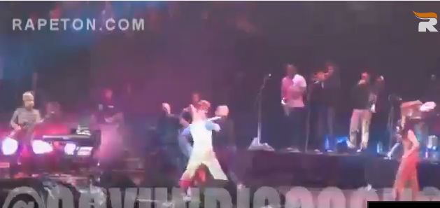 En una grabación colgada en YouTube de Rapetón noticias, se ve el momento en que René de Calle 13 lanza un puñetazo a un fanático que intento subirse al escenario durante la presentación del rapero.