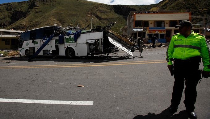 El accidente, que dejó 23 muertos y 22 heridos, ocurrió en la carretera andina que une Quito con la zona de Papallacta, cuando un autobús colombiano de pasajeros chocó con un todoterreno en el sector de Palugo.