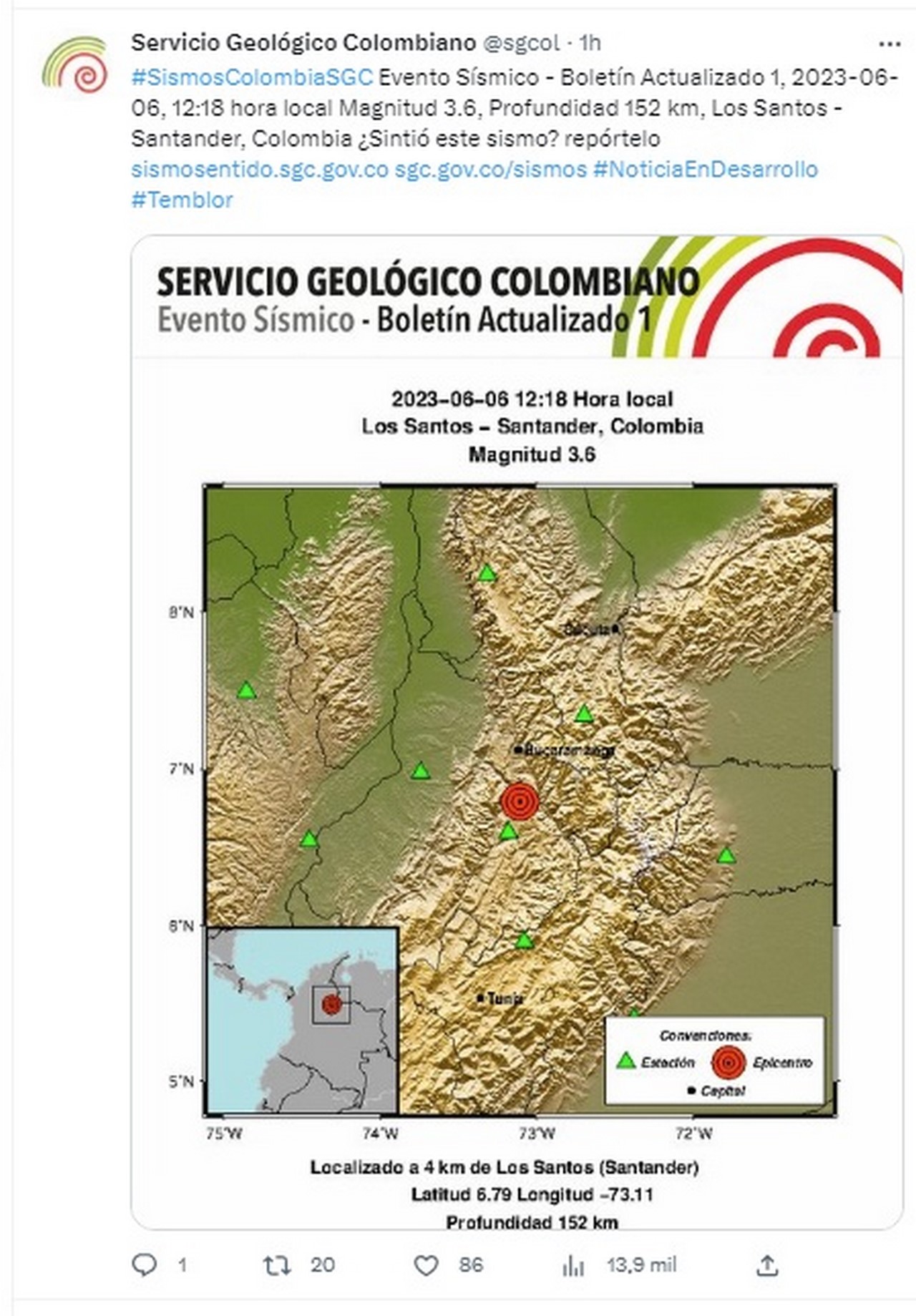 — Servicio Geológico Colombiano (@sgcol) June 6, 2023