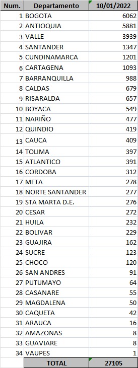Este lunes 10 de enero el Ministerio de Salud dio a conocer el reporte de contagiados de COVID-19 en el país, que muestra que Bogotá superó la cifra de Antioquia, luego de que el departamento había estado al frente de los nuevos casos durante los últimos días.