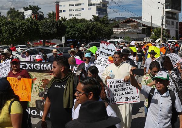 Los trabajadores de medios de comunicación marcharon por las principales calles de la ciudad con pancartas en las que denunciaron que "no se mata la verdad matando periodistas".