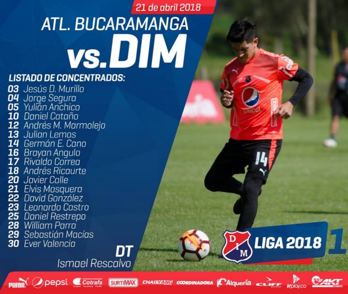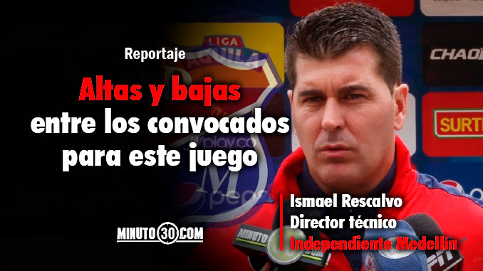 • Minuto30.com- El director técnico de Independiente Medellín, Ismael Rescalvo, explicó algunas de las novedades que hay en los concentrados del ‘Rojo’, de cara al partido de este sábado ante Atlético Bucaramanga.
