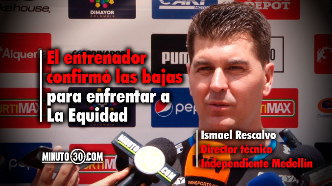 Minuto30.com- El español Ismael Rescalvo, quien ante la salida de Juan José Peláez asumió de manera interina la dirección técnica de Independiente Medellín, aseguró que uno de los retos en los trabajos del cierre de la semana, fue buscar que este sábado, en el partido frente a La Equidad, no se sientan tanto las ausencias.