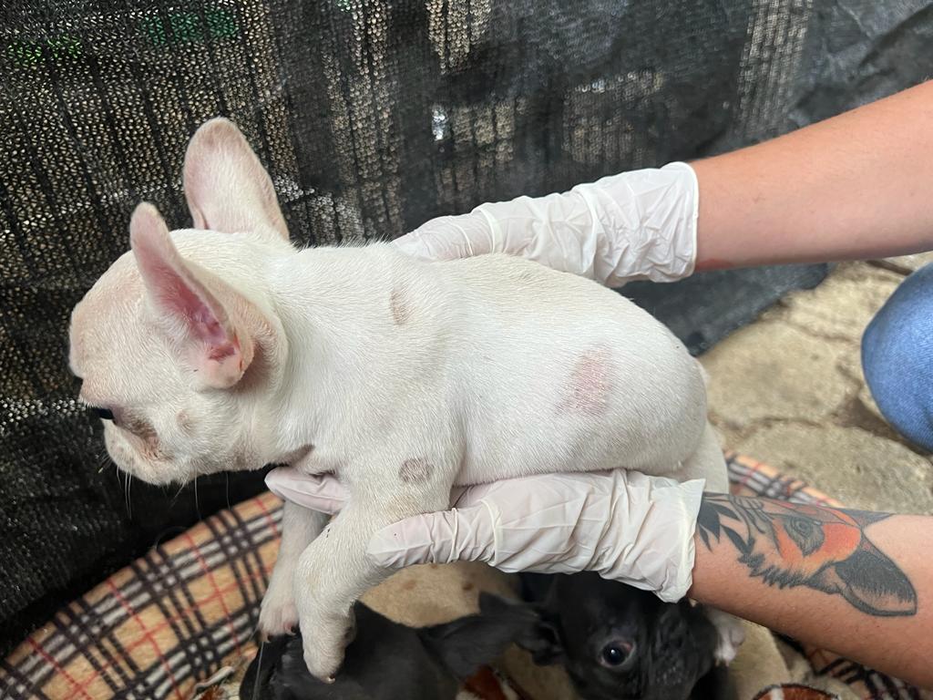 En el sitio, los uniformados encontraron 5 hembras y 11 cachorros de raza Bull Dog Francés que luego de la valoración médico veterinaria observan que los animales no cuentan con las condiciones de bienestar, ni higiénico sanitarias.