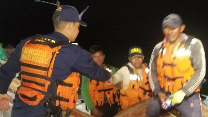 De inmediato una Unidad de Reacción Rápida atendió la emergencia, hallando a los tres hombres, de 49, 28 y 18 años de edad, a bordo de la motonave de nombre “La Niña 03”, a 10 millas náuticas de la costa de Mayapo.