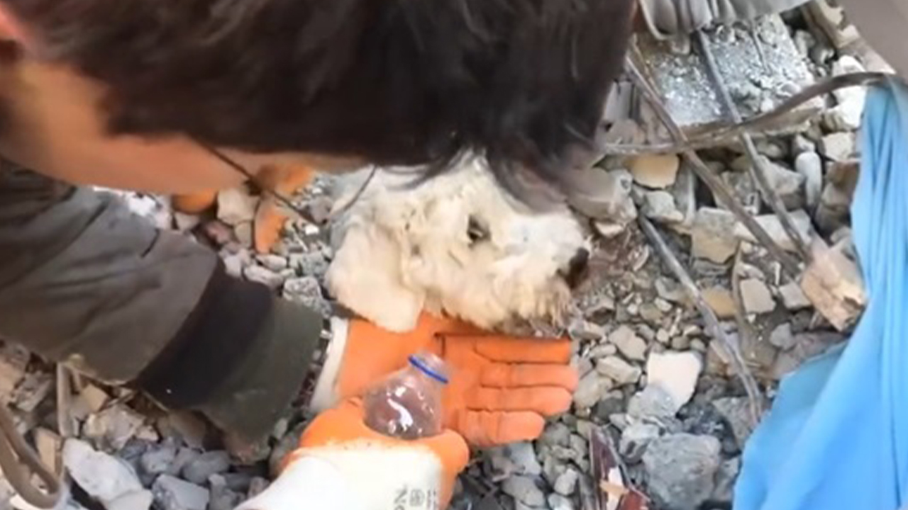 Y como cada vida vale, en redes sociales se hizo viral la grabación del momento en que rescatistas luchan desesperadamente por salvar a un perrito que está atrapado en medio de los escombros en Iskenderun.